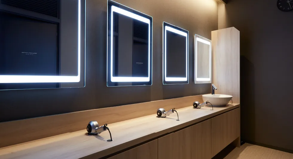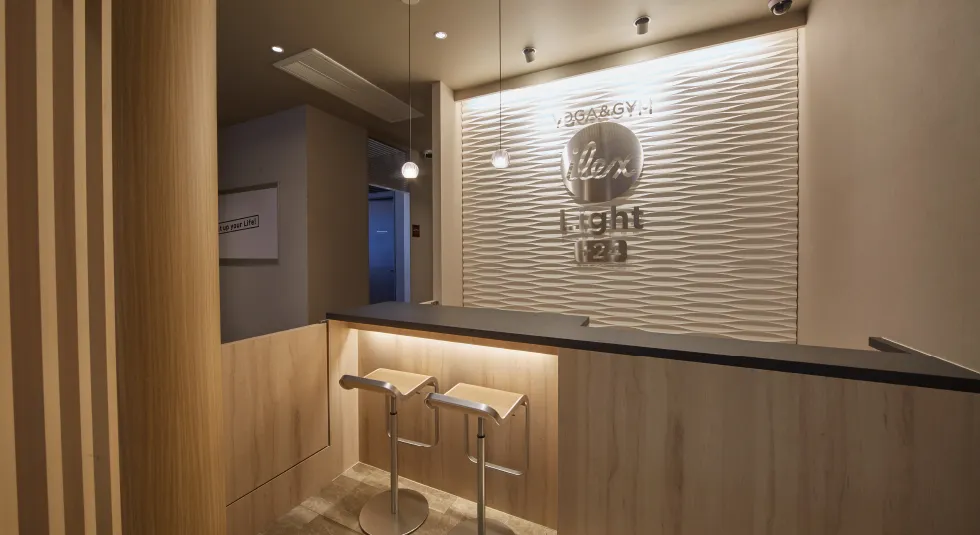 デザイン空間- アイレクス・ライトの店舗は、清潔さと内装デザインに細部までこだわり、運動だけでなく快適に過ごせる居心地のよい空間となっています。