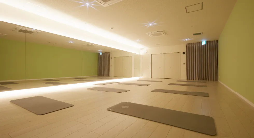 外からの視線を遮るカーテンにより、周りを気にせずヨガをお楽しみいただけます。